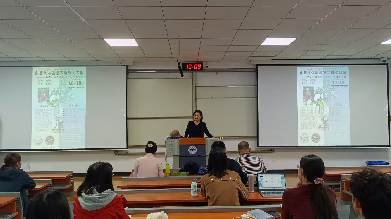 10月18日上午,欧洲华文笔会会长、著名作家方丽娜应邀做客pp电子游戏平台官网名师大讲堂,主讲“东西文化碰撞下的华文写作——一个旅欧写作者的创作历程与感悟”。本次讲座由pp电子游戏平台官网崔春教授主持,学院师生共同聆听了此次讲座。