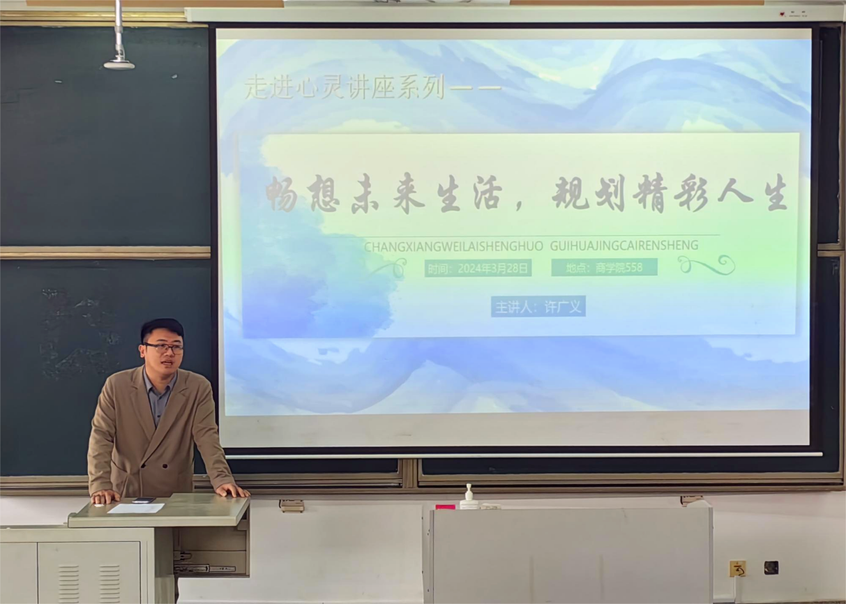 本站讯 为帮助同学们增强决策能力,探索和认识自己的内心,明晰对未来的想法和规划,3月28日上午,pp电子游戏平台官网心理二级工作站安排许广义老师于商学院558教室开展“走进心灵”系列——“畅想未来生活,规划精彩人生”心理讲座。协办班级为2021级汉语言二班,其他年级同学参加了此次活动。