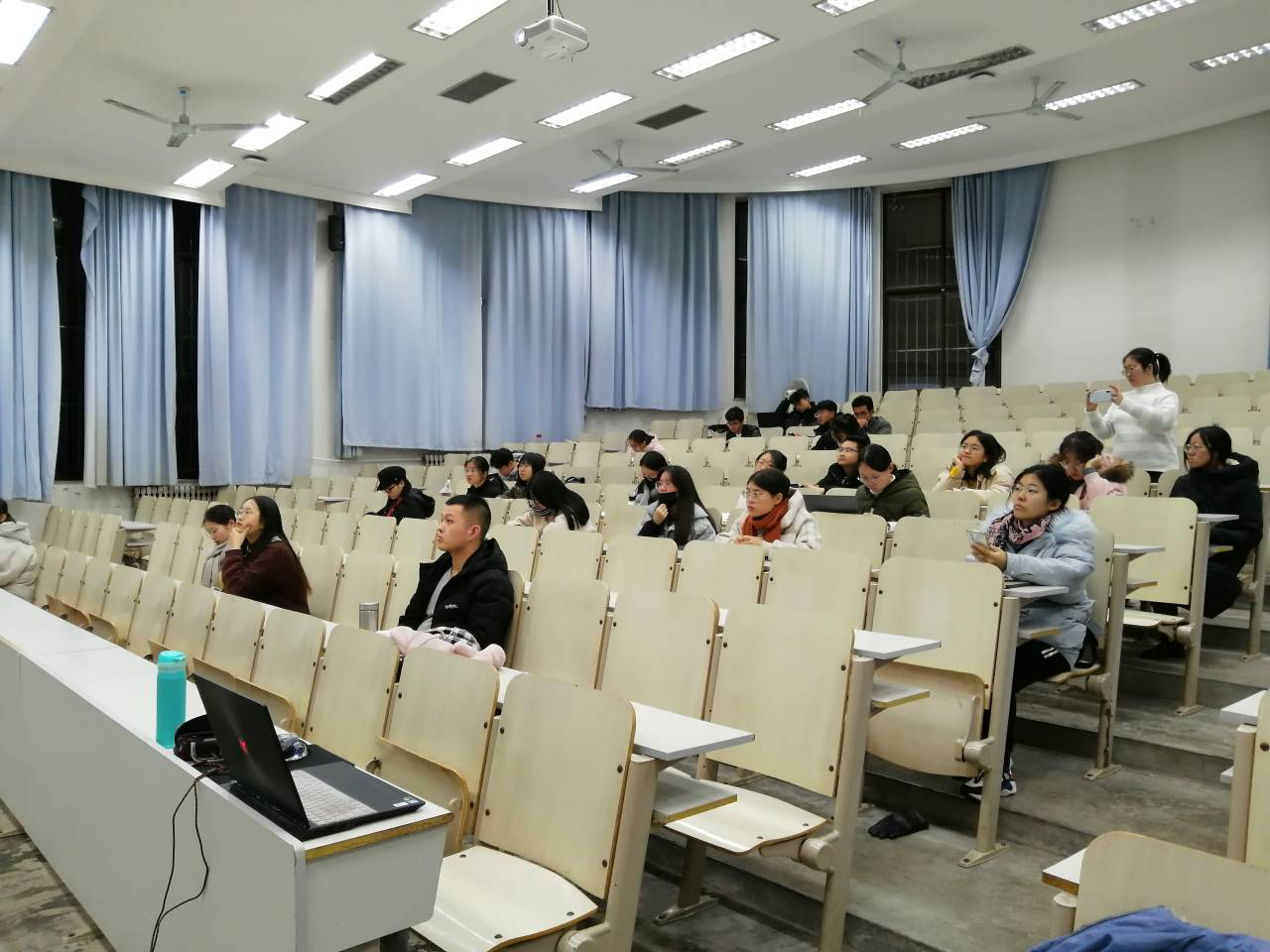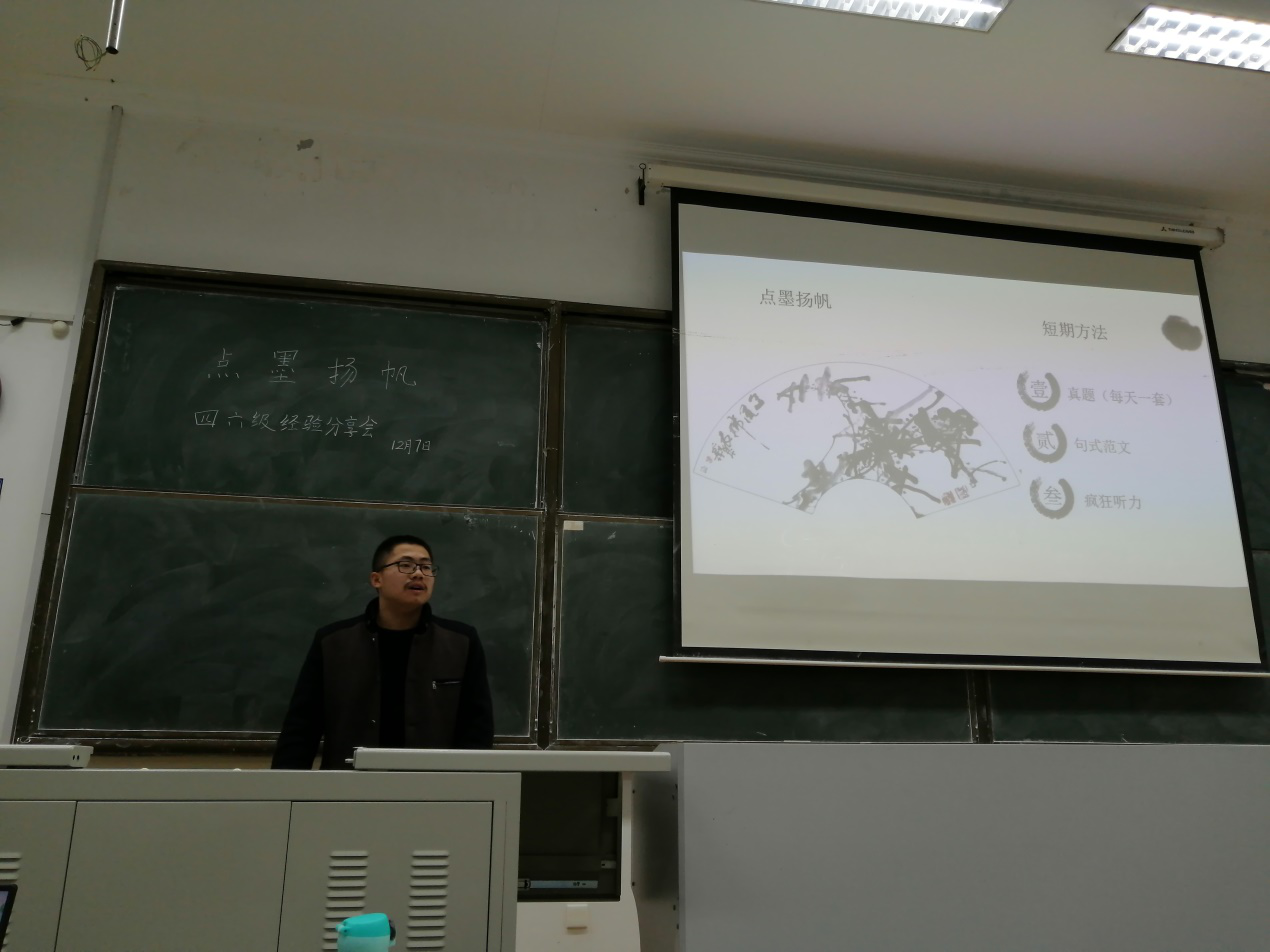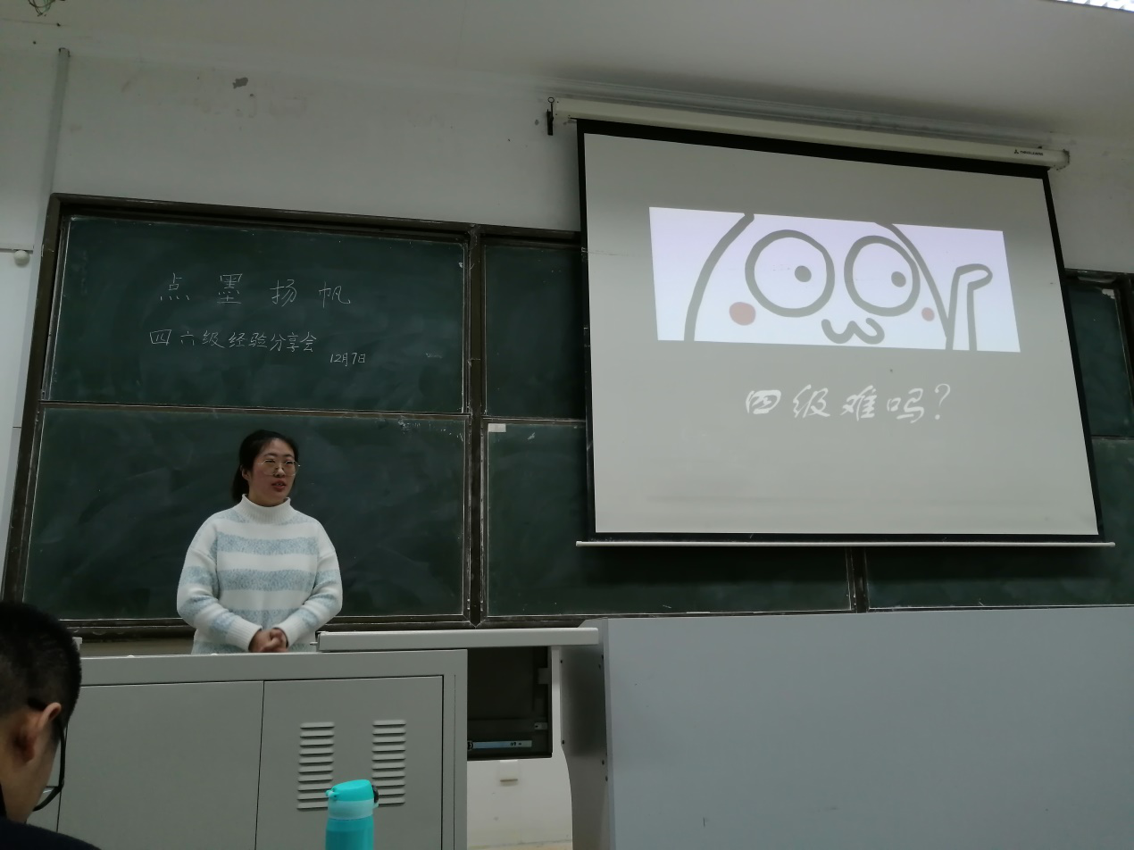 本站讯 12月7日晚,pp电子游戏平台官网“点墨扬帆”互助团队于图东教学楼108室举办了四六级考试经验分享会。2018级汉语言文学专业的朱亚楠、周欢和张梦凡担任主讲人。“点墨扬帆”团队全体成员与pp电子部分同学到场参与了此次活动。