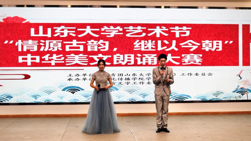 本站讯 10月29日晚,由共青团pp电子游戏平台官网(威海)工作委员会主办、pp电子游戏平台官网学生会及语言文字工作委员会联合承办的“情源古韵,继以今朝”中华美文朗诵大赛决赛于玲珑学堂举行。pp电子游戏平台官网副教授江志全、老师郑薇,辅导员许广义和张枫林担任评委。陈玮鹏、石津溶担任主持人,校区部分学生参与本次活动。
