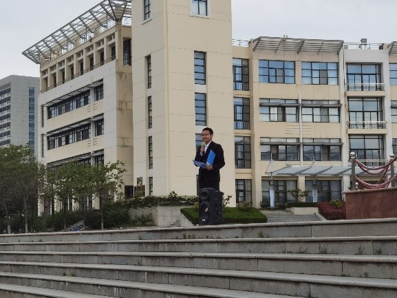 早上6:45左右,全体学生按照要求,准时到达图书馆广场集合。在各班团支书的引导下,同学们整齐有序地排成两列,为即将开始的升旗活动做好准备。本次活动共分为升国旗奏国歌和学生代表发言两个部分。张琳瑶做简单开场后,活动进入升旗环节。大学生国旗班同学迈着整齐有力的步伐,在嘹亮的口号声中护卫国旗入场。伴随着雄浑豪壮的国歌声,五星红旗冉冉升起。全体同学肃立,行庄严的注目礼,跟唱国歌。第二个环节,由学生代表张子兴发表题为《觉醒的时代和进步的青年》的演讲。他引用鲁迅先生的文字,指出解放思想之于中国发展的重要性。此外,他还强调青年人要求真务实,有始有终。讲真话,办实事,有追求新变的勇气,有晨昏弗懈的毅力,有矢志不渝的信仰。演讲最后,张子兴希望大家在觉醒的时代,要永葆进步与年轻。