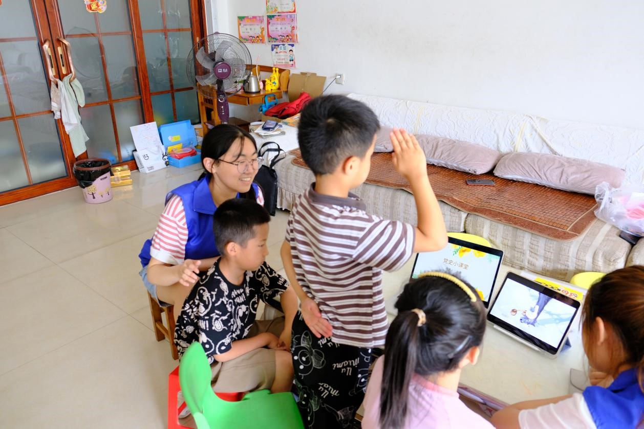 本次支教活动以综合素质课程为主,设计了四大授课特色,分别为手工能力、红色教育、审美体验和安全教育四个主题,并围绕这些主题设立了2-3门课程。儿童美术和手工通过“手把手”教学与孩子亲密接触,一步步引导小朋友制作出精美的绘画和折纸作品,在这个过程中也培养了孩子的动手能力和专注力,为小朋友的个性发展注入了活力。审美体验则侧重于对视频和图片的欣赏,把天文、地理的知识放在一幅幅绚丽的图片当中,让孩子隔着屏幕触摸星空、游历山川,增长对祖国大好河山的了解和认识。红色教育是支教工作的重中之重,团队成员用生动明快、深入浅出的语言为小朋友讲述了红军战士长征、抗战的红色历史以及中华人民共和国成立的故事,将爱国爱党的历史使命感和责任感传递到每个孩子的心中。安全教育涵盖了心理健康和防溺水、自救教育两方面内容,以寓教于乐的方式引导学生及家长重视孩子的性格培养和人身安全等方面问题。除了素质教育之外,支教也包括基本的课业辅导。由于各位小朋友的年纪和学习任务不同,团队采取了具有针对性的辅导方式。队员针对题目中常出现的一些字词展开了讲解,以培养孩子自主做题的能力。